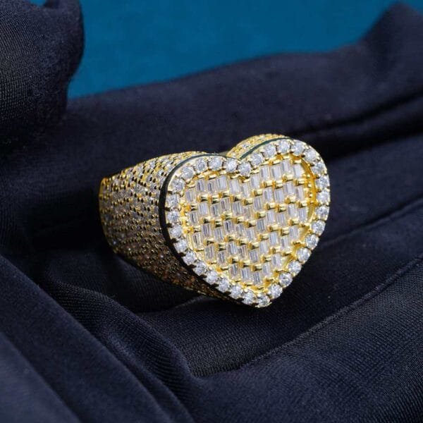 Read More DetailsJuicx exclusive Moissanite Baguette Heart Signet Ring 14K Gold is now available, made of 925 sterling silver and PVD plated with a thick layer of 14K Gold. The weight of this moissanite ring starts from exactly 18.2 grams.
