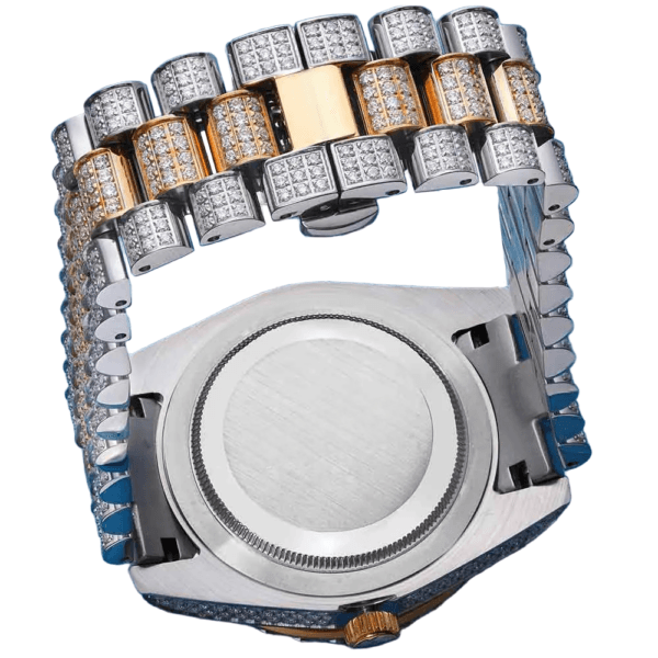 Read More DetailsJuicx exclusive Moissanite Presidential Watch is now available, made of stainless steel and PVD plated with a thick layer of 14K Rose Gold.